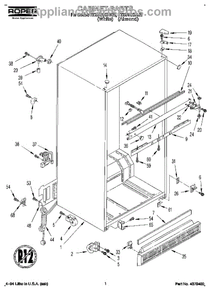 Parts for Roper RT22AKXBW00: 01 - Cabinet Parts