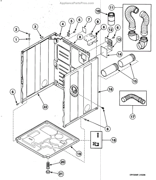 Parts for Speed Queen SDG309WF: Cabinet Parts