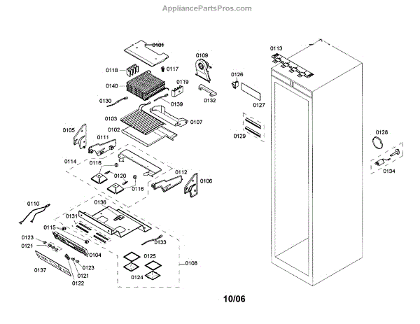 The FIXTURE is an OEM component specifically designed for Bosch refrigerators. Typically located inside the fresh food compartment, fixtures hold slidable wire shelves, bins, crispers, and other removable storage accessories in precise positions.