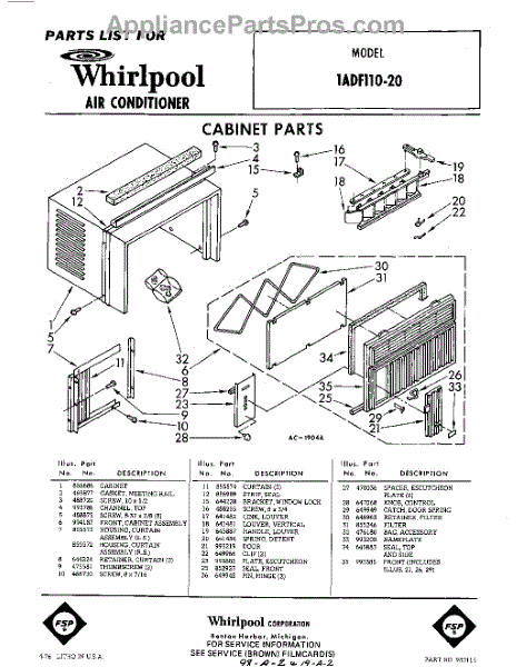Parts for Whirlpool 1ADF11020: 01 - Cabinet Parts