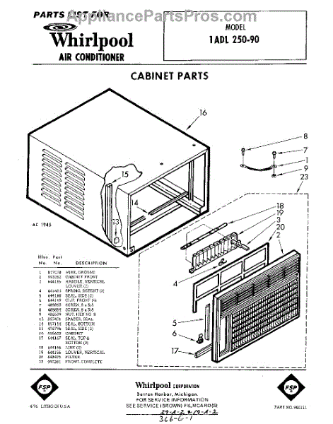 Parts for Whirlpool 1ADL25090: 01 - Cabinet Parts