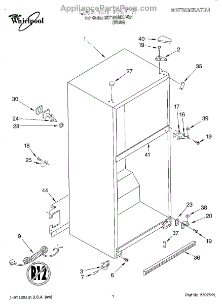The Hinge Washer is an OEM replacement part for Whirlpool refrigerators. This small washer plays a supports the refrigerator door hinge assembly. Center hinge plastic washer. Causes of a bad hinge washer are generally normal wear and tear from extensive use. As the washer absorbs pressure each time the door is opened or closed, it can gradually deteriorate or crack. Physical damage is also possible if the door is accidentally struck or slammed. Symptoms of a worn or damaged hinge washer include:
