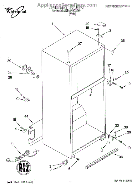 The Hinge Washer is an OEM replacement part for Whirlpool refrigerators. This small washer plays a supports the refrigerator door hinge assembly. Center hinge plastic washer. Causes of a bad hinge washer are generally normal wear and tear from extensive use. As the washer absorbs pressure each time the door is opened or closed, it can gradually deteriorate or crack. Physical damage is also possible if the door is accidentally struck or slammed. Symptoms of a worn or damaged hinge washer include: