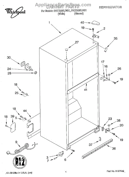 The Hinge Washer is an OEM replacement part for Whirlpool refrigerators. This small washer plays a supports the refrigerator door hinge assembly. Center hinge plastic washer. Causes of a bad hinge washer are generally normal wear and tear from extensive use. As the washer absorbs pressure each time the door is opened or closed, it can gradually deteriorate or crack. Physical damage is also possible if the door is accidentally struck or slammed. Symptoms of a worn or damaged hinge washer include: