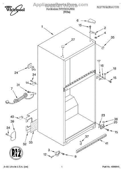 The Hinge Washer is an OEM replacement part for Whirlpool refrigerators. This small washer plays a supports the refrigerator door hinge assembly. Center hinge plastic washer. Causes of a bad hinge washer are generally normal wear and tear from extensive use. As the washer absorbs pressure each time the door is opened or closed, it can gradually deteriorate or crack. Physical damage is also possible if the door is accidentally struck or slammed. Symptoms of a worn or damaged hinge washer include: