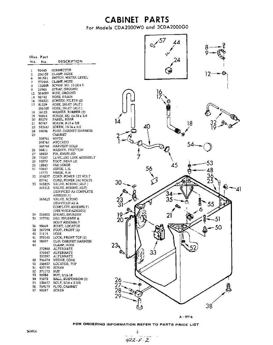 Parts for Whirlpool 3CDA2000G0: 02 - Cabinet Parts