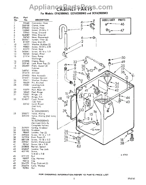 Parts for Whirlpool 3CFA2000W3: 05 - Cabinet Parts