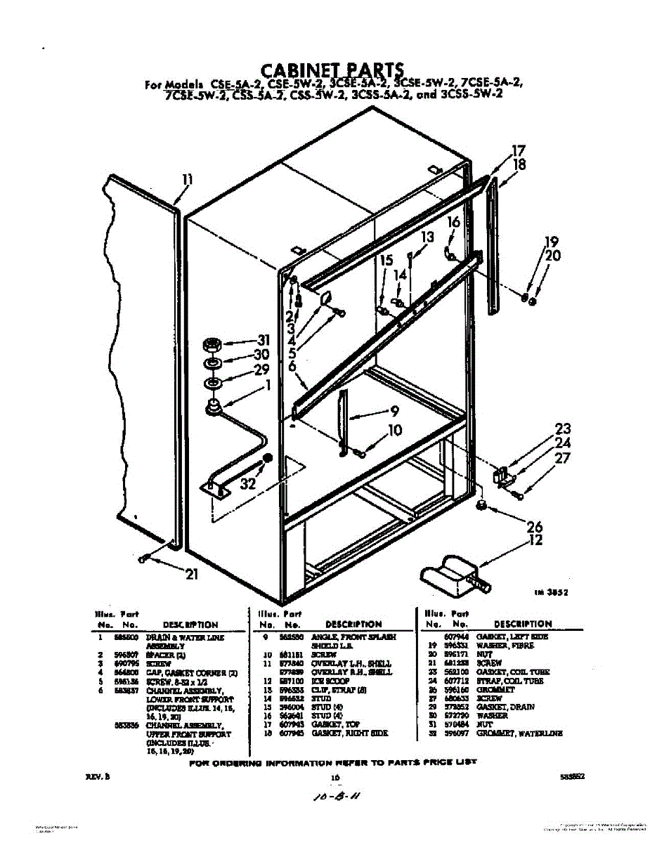 Parts for Whirlpool 3CSE5A2: 10 - Cabinet Parts