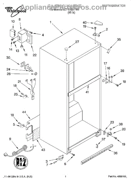 The Hinge Washer is an OEM replacement part for Whirlpool refrigerators. This small washer plays a supports the refrigerator door hinge assembly. Center hinge plastic washer. Causes of a bad hinge washer are generally normal wear and tear from extensive use. As the washer absorbs pressure each time the door is opened or closed, it can gradually deteriorate or crack. Physical damage is also possible if the door is accidentally struck or slammed. Symptoms of a worn or damaged hinge washer include: