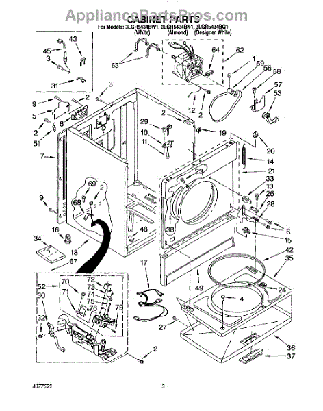 Fits all Whirlpool-made dryers (Whirlpool, Kenmore with prefix 110, Roper, KitchenAid, and Estate). Matching belt 341241 and rear support rollers 349241T. Whirlpool dryer repair manual 677818L.