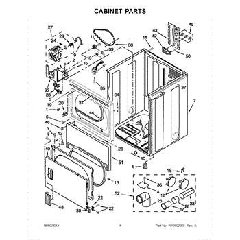 This exhaust cover plate protects and finishes the dryer's exhaust outlet, helping direct airflow and keeping the vent opening sealed from debris. It provides a clean, durable surface where the exhaust connects to the dryer cabinet. What it does: