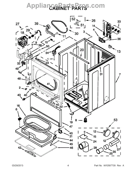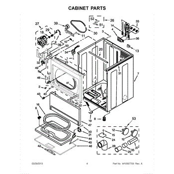 Cabinet housing for dryers. This outer shell encases internal components. Replace if cracked, rusted, dented, or structurally damaged from impact or wear.
