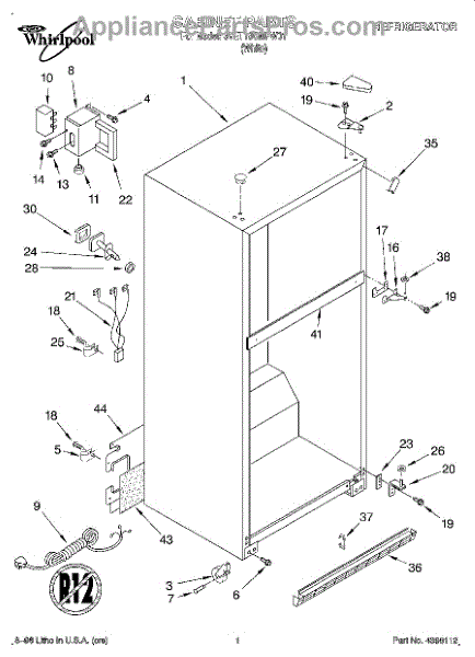 The Hinge Washer is an OEM replacement part for Whirlpool refrigerators. This small washer plays a supports the refrigerator door hinge assembly. Center hinge plastic washer. Causes of a bad hinge washer are generally normal wear and tear from extensive use. As the washer absorbs pressure each time the door is opened or closed, it can gradually deteriorate or crack. Physical damage is also possible if the door is accidentally struck or slammed. Symptoms of a worn or damaged hinge washer include: