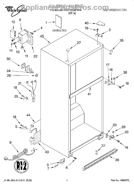 Repair manual for refrigerators and freezers made by Whirlpool. Covered brands include Whirlpool, Sears, Kenmore, Kitchen Aid, Roper, and Estate. Easy to follow photographs and step-by-step repair procedures.