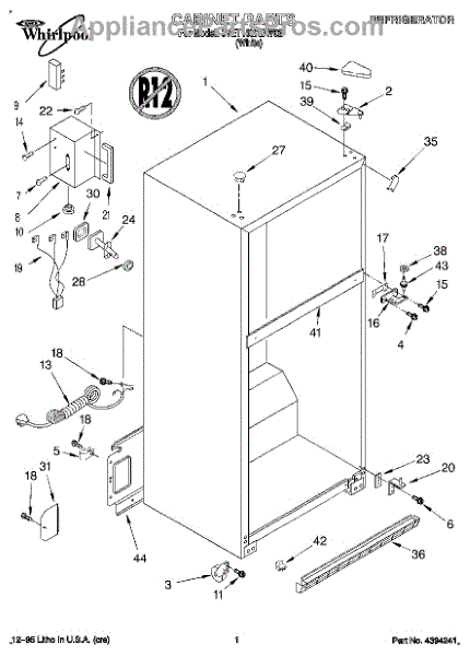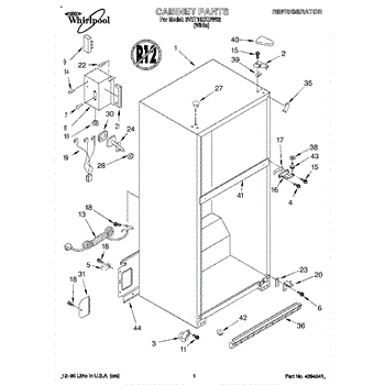 Parts for Whirlpool 3VET19ZKDW02: 01 - Cabinet Parts