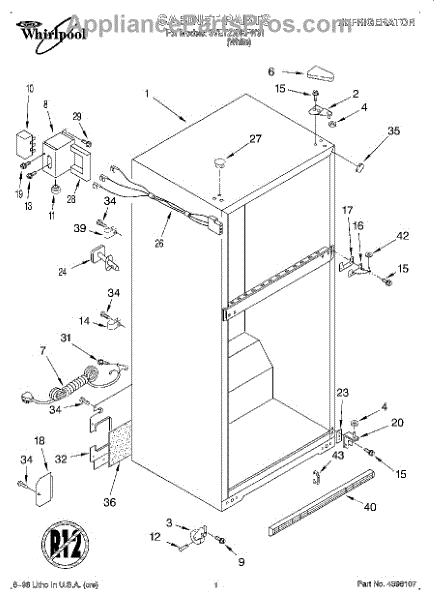 The Hinge Washer is an OEM replacement part for Whirlpool refrigerators. This small washer plays a supports the refrigerator door hinge assembly. Center hinge plastic washer. Causes of a bad hinge washer are generally normal wear and tear from extensive use. As the washer absorbs pressure each time the door is opened or closed, it can gradually deteriorate or crack. Physical damage is also possible if the door is accidentally struck or slammed. Symptoms of a worn or damaged hinge washer include: