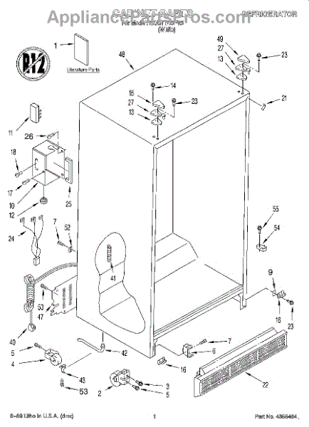 Parts for Whirlpool 3XART722F02: 01 - Cabinet, Literature Parts