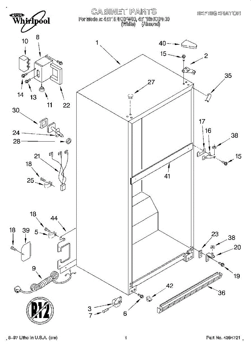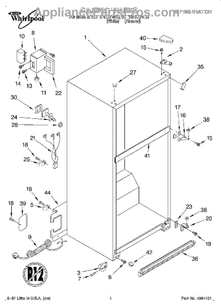 The Hinge Washer is an OEM replacement part for Whirlpool refrigerators. This small washer plays a supports the refrigerator door hinge assembly. Center hinge plastic washer. Causes of a bad hinge washer are generally normal wear and tear from extensive use. As the washer absorbs pressure each time the door is opened or closed, it can gradually deteriorate or crack. Physical damage is also possible if the door is accidentally struck or slammed. Symptoms of a worn or damaged hinge washer include:
