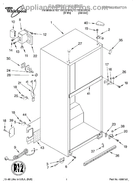 The Hinge Washer is an OEM replacement part for Whirlpool refrigerators. This small washer plays a supports the refrigerator door hinge assembly. Center hinge plastic washer. Causes of a bad hinge washer are generally normal wear and tear from extensive use. As the washer absorbs pressure each time the door is opened or closed, it can gradually deteriorate or crack. Physical damage is also possible if the door is accidentally struck or slammed. Symptoms of a worn or damaged hinge washer include: