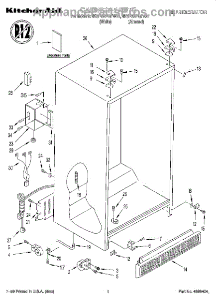 Parts for Whirlpool 4KSRS27QFW01: 01 - Cabinet, Literature Parts