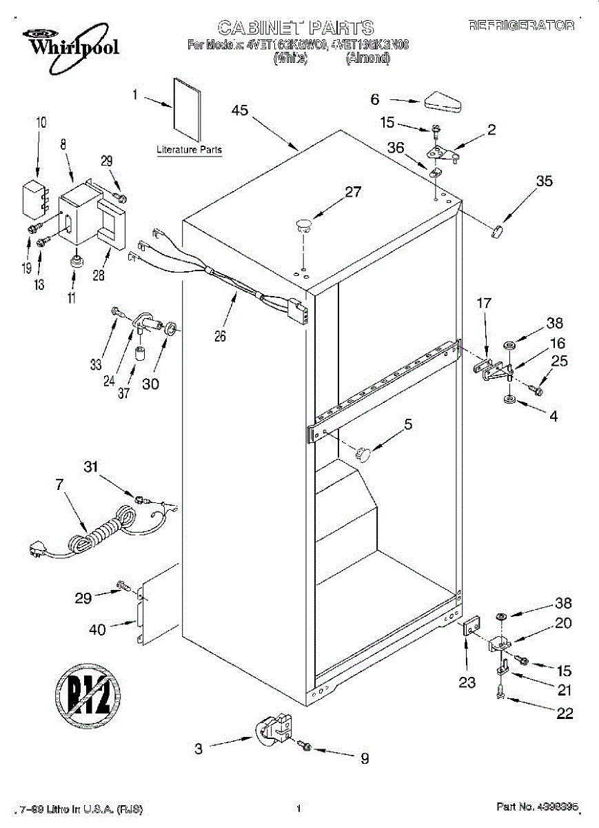 Repair manual for refrigerators and freezers made by Whirlpool. Covered brands include Whirlpool, Sears, Kenmore, Kitchen Aid, Roper, and Estate. Easy to follow photographs and step-by-step repair procedures.