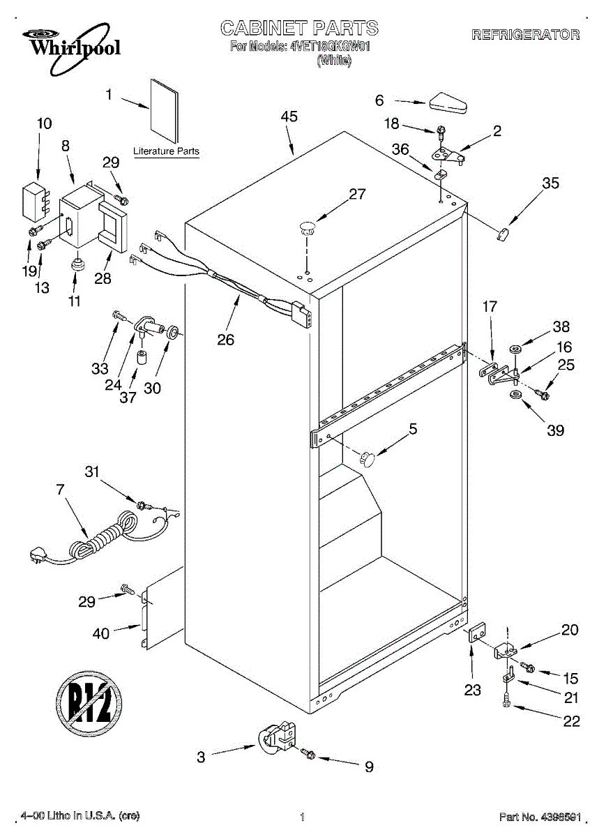 Repair manual for refrigerators and freezers made by Whirlpool. Covered brands include Whirlpool, Sears, Kenmore, Kitchen Aid, Roper, and Estate. Easy to follow photographs and step-by-step repair procedures.