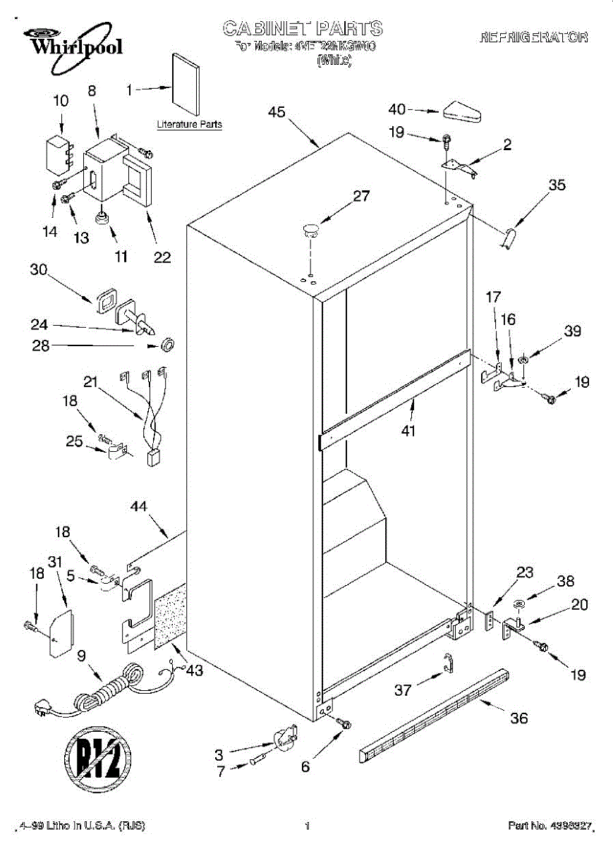 Repair manual for refrigerators and freezers made by Whirlpool. Covered brands include Whirlpool, Sears, Kenmore, Kitchen Aid, Roper, and Estate. Easy to follow photographs and step-by-step repair procedures.