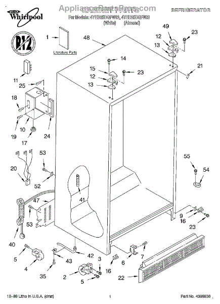 Parts for Whirlpool 4YED25DQFW02: 01 - Cabinet, Literature Parts