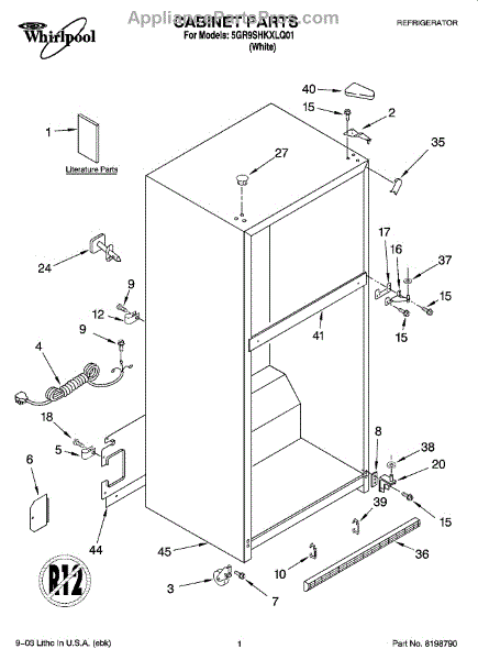 Repair manual for refrigerators and freezers made by Whirlpool. Covered brands include Whirlpool, Sears, Kenmore, Kitchen Aid, Roper, and Estate. Easy to follow photographs and step-by-step repair procedures.