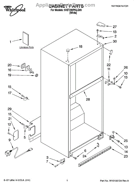 Repair manual for refrigerators and freezers made by Whirlpool. Covered brands include Whirlpool, Sears, Kenmore, Kitchen Aid, Roper, and Estate. Easy to follow photographs and step-by-step repair procedures.