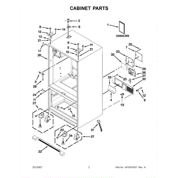 The Roller Assembly is an OEM part for Whirlpool refrigerators. It contains heavy-duty ball bearing rollers located along the bottom front-right cabinet. Repeatedly maneuvering fully-loaded refrigerators can cause cabinet rollers to crack or bearing races to deteriorate over extended use. Potential failure causes include structural cracks from strong impacts or bearing lubrication washing away from repeated wet cleaning. Symptoms of faulty cabinet rollers include: