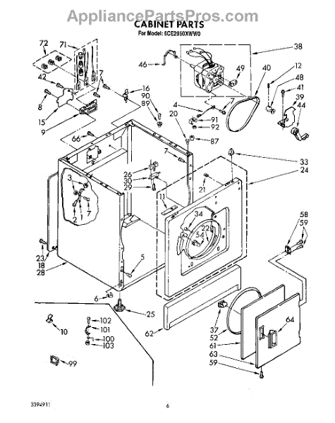 Fits all Whirlpool-made dryers (Whirlpool, Kenmore with prefix 110, Roper, KitchenAid, and Estate). Matching belt 341241 and rear support rollers 349241T. Whirlpool dryer repair manual 677818L.