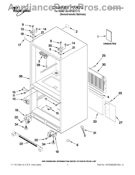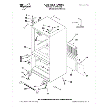 The Leveling Leg is an OEM replacement part for Whirlpool refrigerators. It is one of four legs situated internally at the base corners for proper tilt positioning. It raises or lowers each leg independently to stabilize units on uneven kitchen floors. Causes of replacement consist of wear from continual torque required during positioning processes. Thread damage or corrosion buildup attributable to floor locations over extended use necessitates periodic renewal as well. Symptoms involve: