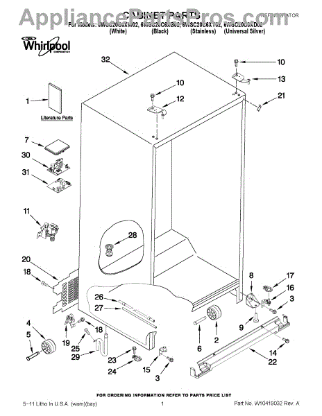 The Leveling Leg is an OEM replacement part for Whirlpool refrigerators. It is one of four legs situated internally at the base corners for proper tilt positioning. It raises or lowers each leg independently to stabilize units on uneven kitchen floors. Causes of replacement consist of wear from continual torque required during positioning processes. Thread damage or corrosion buildup attributable to floor locations over extended use necessitates periodic renewal as well. Symptoms involve: