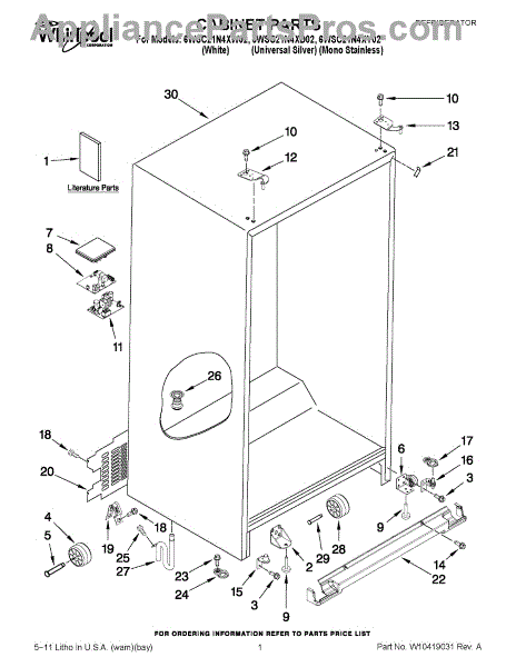 Parts for Whirlpool 6WSC21N4XW02: 01 - Cabinet Parts