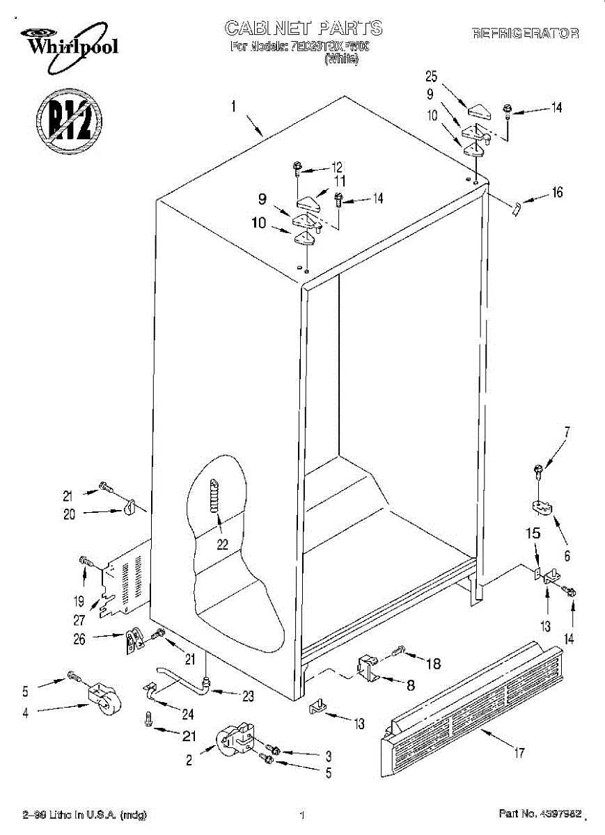 Clip for bottom grill. If your original clip is riveted, order screw WP489478.
