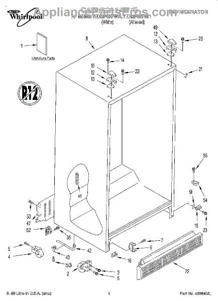 Parts for Whirlpool 7ED22PQXFN01: 01 - Cabinet, Literature Parts