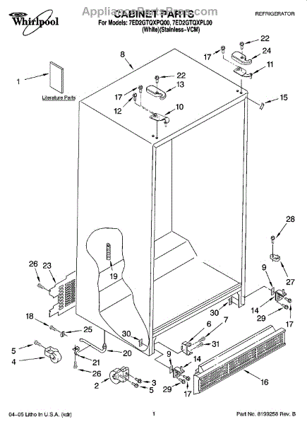 Clip for bottom grill. If your original clip is riveted, order screw WP489478.