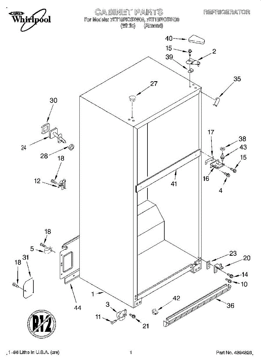 The Center Door Hinge is an OEM replacement part for Whirlpool refrigerators. As one of several hinges supporting each refrigerator door panel, it works to guide opening and closing movements. Causes of a faulty center hinge tend to be wear from years of continuous operation with near-daily door cycles. Complete failure could also occur in the event of physical damage sustained during a repair or installation issue. Symptoms include: