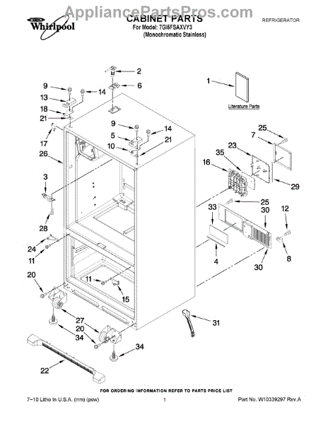 The Leveling Leg is an OEM replacement part for Whirlpool refrigerators. It is one of four legs situated internally at the base corners for proper tilt positioning. It raises or lowers each leg independently to stabilize units on uneven kitchen floors. Causes of replacement consist of wear from continual torque required during positioning processes. Thread damage or corrosion buildup attributable to floor locations over extended use necessitates periodic renewal as well. Symptoms involve: