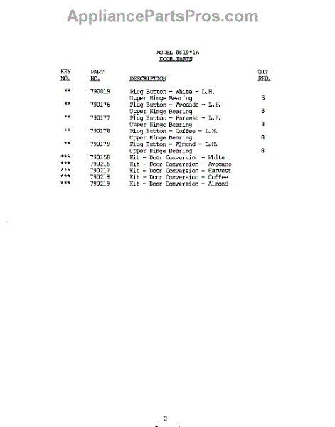 Parts for 8619W1A