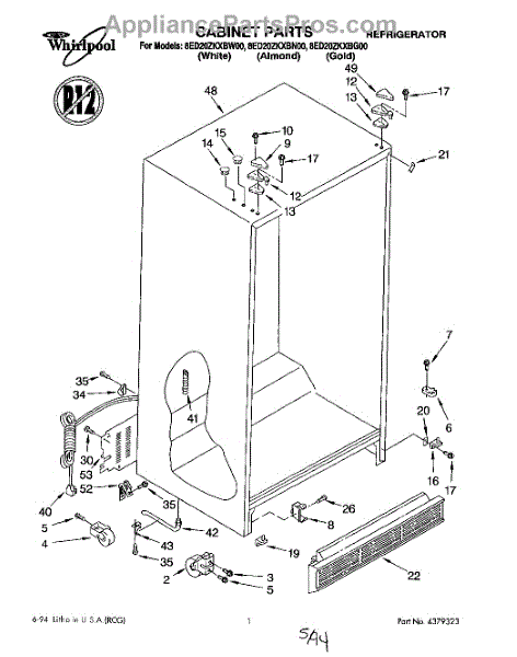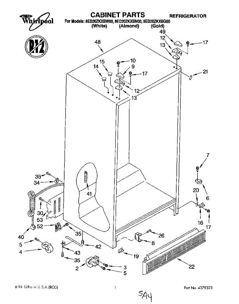 Parts for Whirlpool 8ED20ZKXBG00: 01 - Cabinet Parts