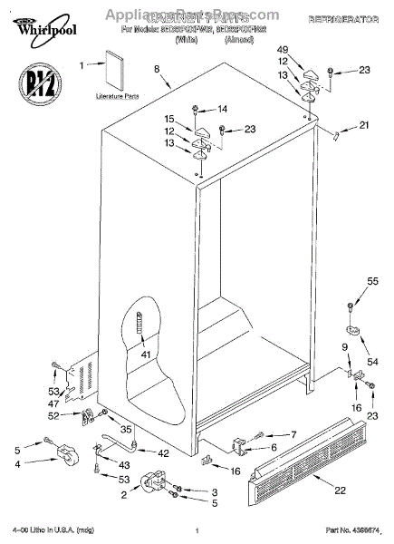 Parts for Whirlpool 8ED22PQXFN02: 01 - Cabinet, Literature Parts