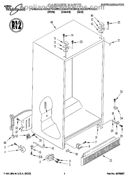 Parts for Whirlpool 8ED22PWXBG01: 01 - Cabinet Parts