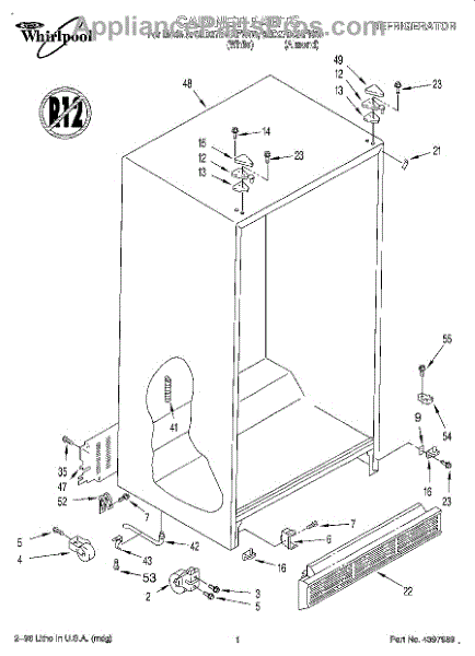 Parts for Whirlpool 8ED27DQXFW00: 01 - Cabinet Parts