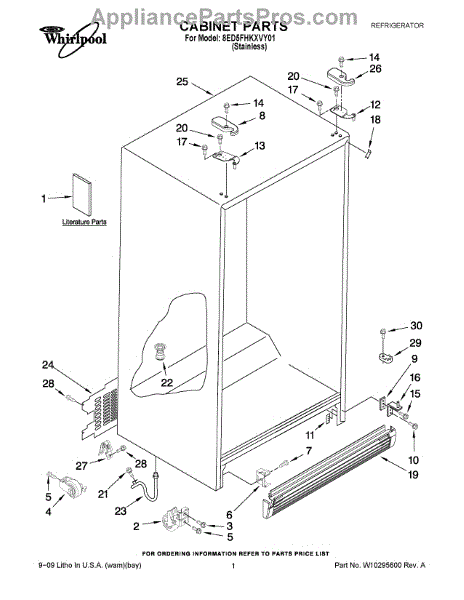 This bottom hinge plate mounts at the base of the refrigerator cabinet to anchor the lower door hinge. Replacing a worn or bent plate restores smooth door swing and a reliable seal for consistent cooling performance.