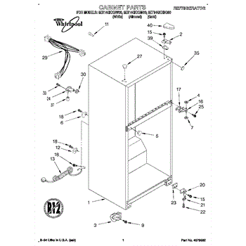 Parts for Whirlpool 8ET14GKXBW00: 01 - Cabinet Parts