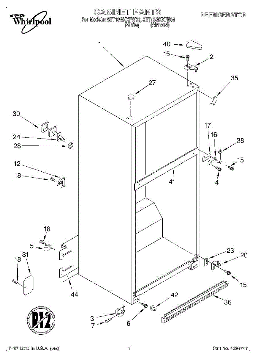 The Center Door Hinge is an OEM replacement part for Whirlpool refrigerators. As one of several hinges supporting each refrigerator door panel, it works to guide opening and closing movements. Causes of a faulty center hinge tend to be wear from years of continuous operation with near-daily door cycles. Complete failure could also occur in the event of physical damage sustained during a repair or installation issue. Symptoms include: