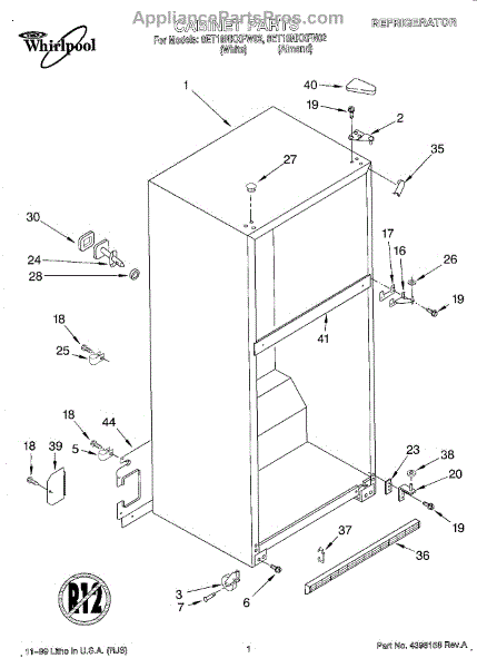 The Hinge Washer is an OEM replacement part for Whirlpool refrigerators. This small washer plays a supports the refrigerator door hinge assembly. Center hinge plastic washer. Causes of a bad hinge washer are generally normal wear and tear from extensive use. As the washer absorbs pressure each time the door is opened or closed, it can gradually deteriorate or crack. Physical damage is also possible if the door is accidentally struck or slammed. Symptoms of a worn or damaged hinge washer include: