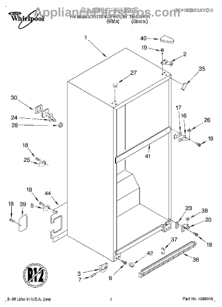 The Hinge Washer is an OEM replacement part for Whirlpool refrigerators. This small washer plays a supports the refrigerator door hinge assembly. Center hinge plastic washer. Causes of a bad hinge washer are generally normal wear and tear from extensive use. As the washer absorbs pressure each time the door is opened or closed, it can gradually deteriorate or crack. Physical damage is also possible if the door is accidentally struck or slammed. Symptoms of a worn or damaged hinge washer include:
